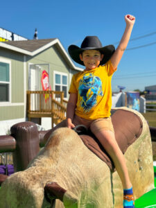 And it worked. The City of Victoria ambassador came to have the honor of doing the ribbon cutting, the local Antique Car Club brought their cars, and their members. There was a DJ, and even live entertainment. My favorite feature, though, was the bull riding — perfect for this market, and everyone wanted to take a spin (including this Lifestylist!). There were lots of foods, giveaways that vendors provided, and sales associates were clearly identified by their special T-shirts so they could give visitors tours of the homes.